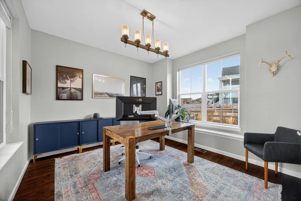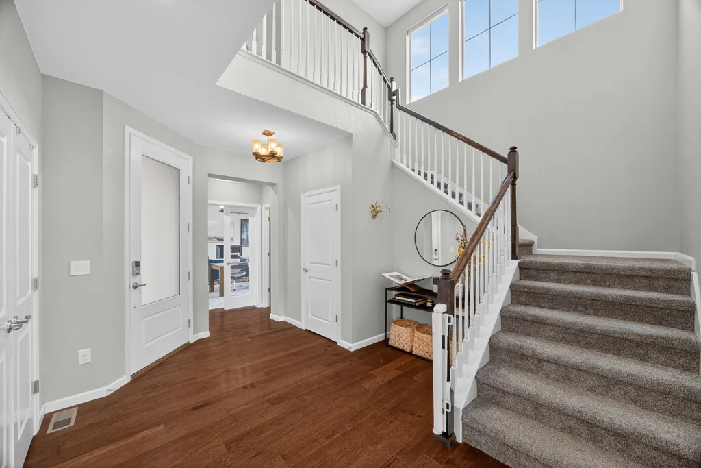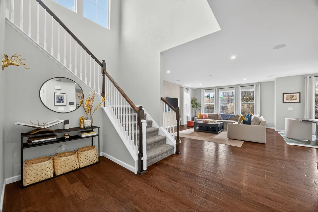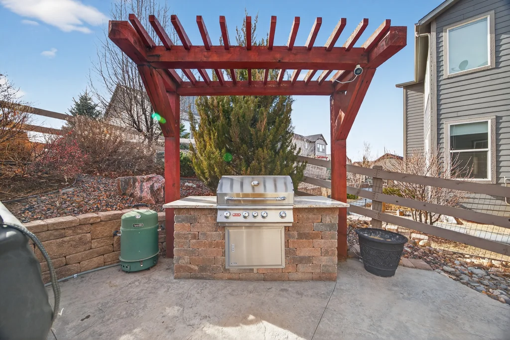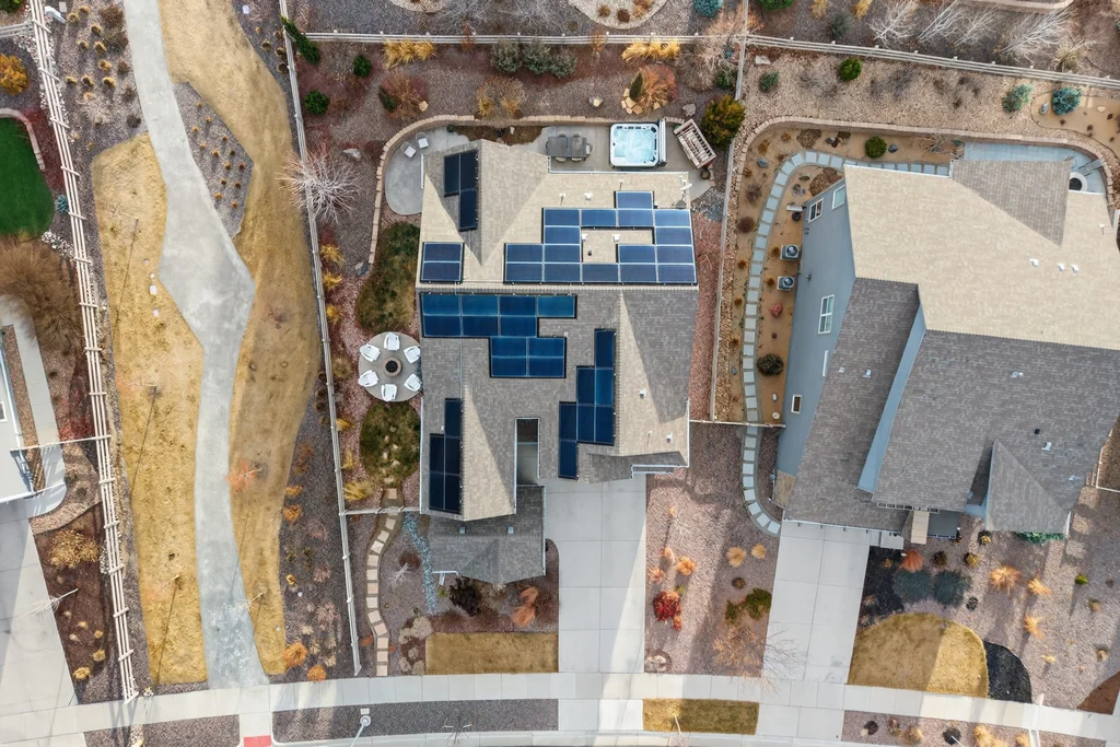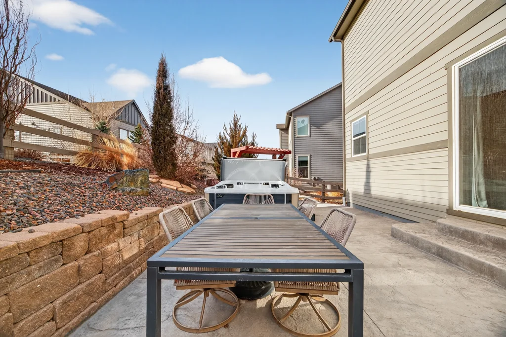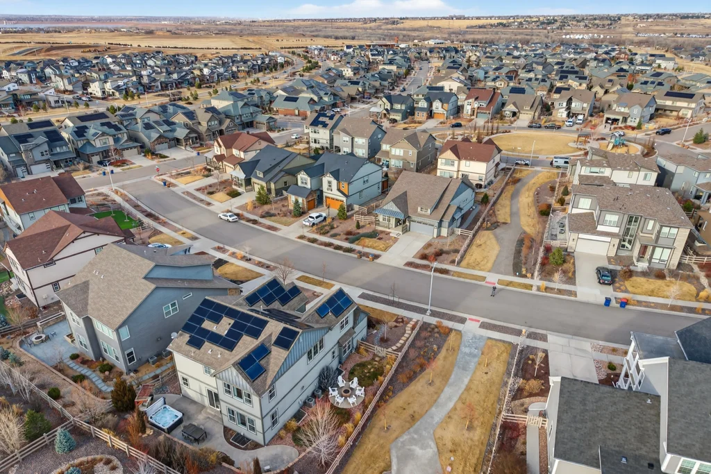 Set against the scenic foothills, this thoughtfully designed Sterling Ranch home blends modern comfort, smart technology, seller owned solar/Powerwalls, and elevated outdoor living, all perfectly positioned beside a community path and a short stroll to a neighborhood park. Step inside to soaring ceilings, expansive windows, and a bright, contemporary layout designed for everyday ease and entertaining alike. The main level features a dedicated office, generous dining area, and great room with built-in surround sound anchored by a gas fireplace. The kitchen is both stylish and functional with premium appliances, upgraded quartz counters, a massive center island, walk-in pantry, and an additional pocket office. A wide sliding door opens to the patio, creating a seamless indoor outdoor flow. Upstairs, four bedrooms provide flexibility and privacy, including three with ensuite baths. The spacious primary suite feels like a retreat, filled with natural light and complemented by a spa inspired bathroom with soaking tub, frameless glass shower, and an oversized walk-in closet. A large laundry room adds everyday convenience. The unfinished basement with 9’ tall ceilings and oversized windows offers excellent potential for future living space. The backyard is designed to impress, featuring professional landscaping with uplighting, stamped concrete patio, stone accents, built in grill station with pergola, multiple seating areas, high end Artesian Elite spa and a custom gas fire pit perfect for Colorado evenings. Energy efficiency is exceptional with a seller owned solar system, three Tesla Powerwalls, and Tesla EV charger. The home achieved a 92% solar offset in 2025 while running two AC units, resulting in an average electric bill under $25 per month. Sterling Ranch residents enjoy access to parks, trails, recreation facilities, community pool, and neighborhood dining and coffee spots just minutes away, creating a lifestyle that feels both active and connected.