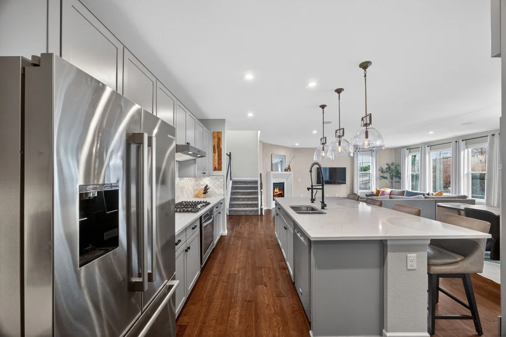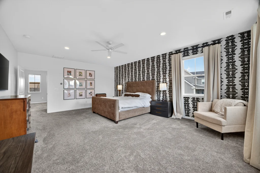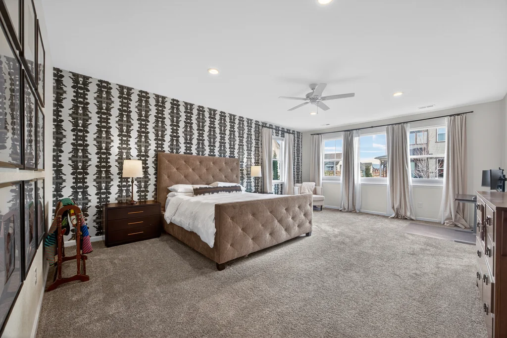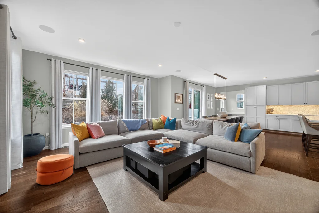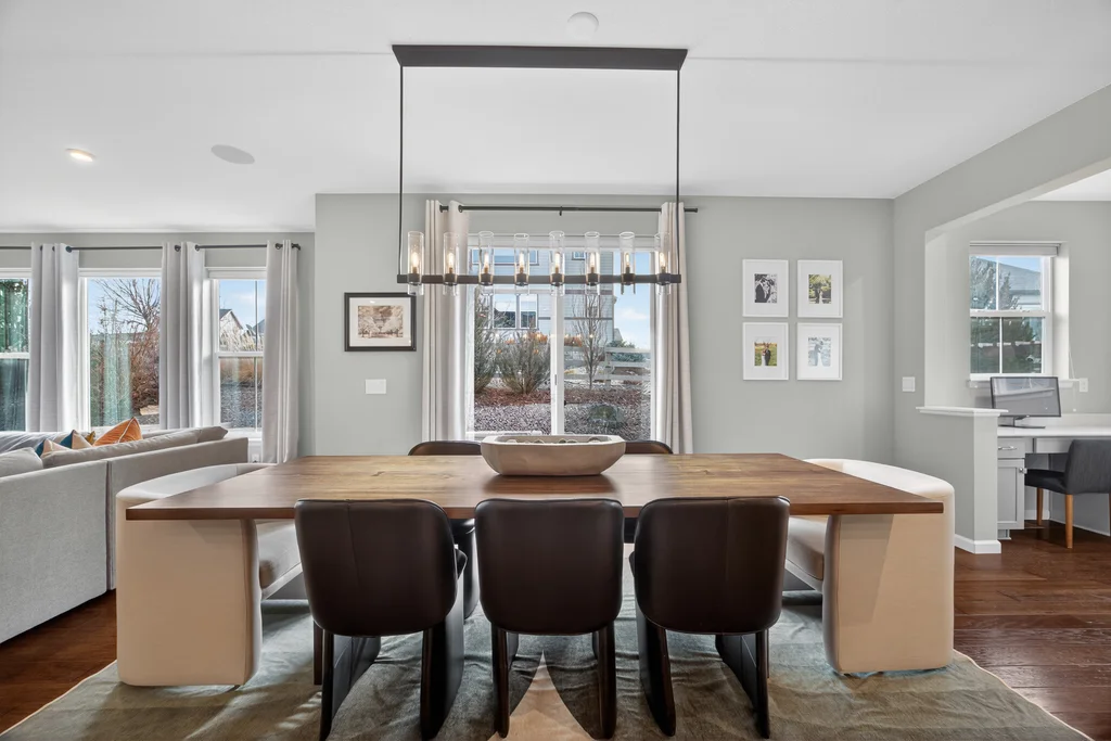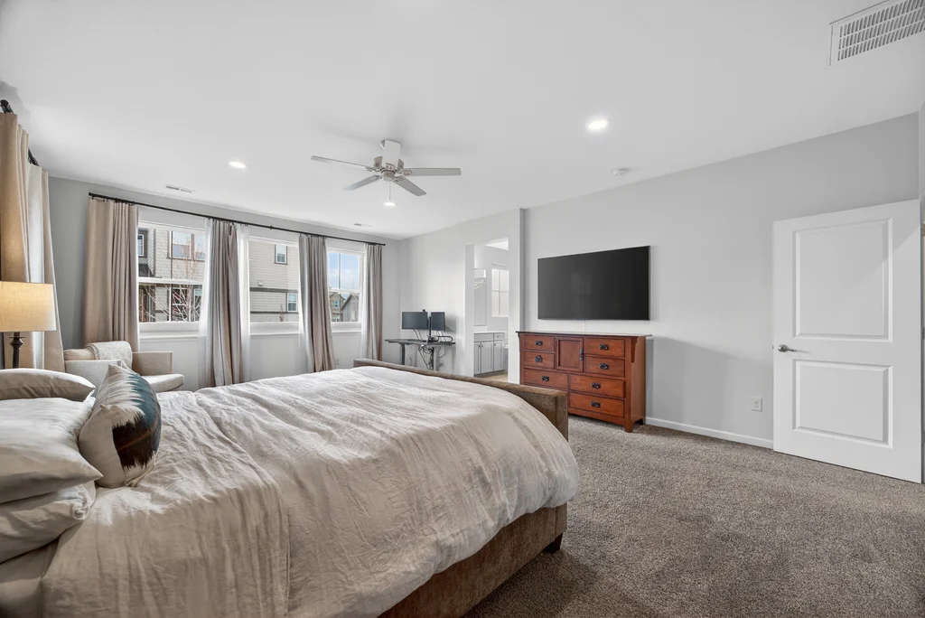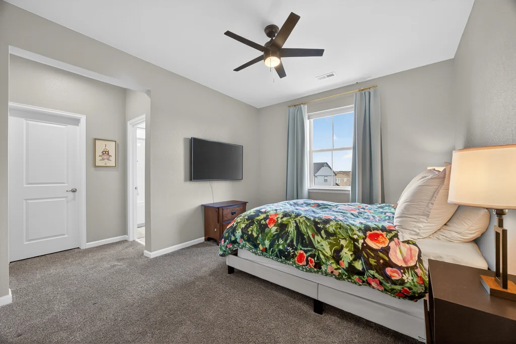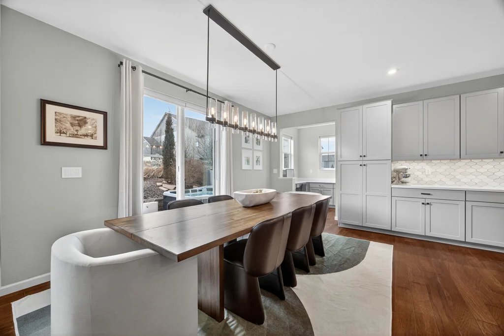 Set against the scenic foothills, this thoughtfully designed Sterling Ranch home blends modern comfort, smart technology, seller owned solar/Powerwalls, and elevated outdoor living, all perfectly positioned beside a community path and a short stroll to a neighborhood park. Step inside to soaring ceilings, expansive windows, and a bright, contemporary layout designed for everyday ease and entertaining alike. The main level features a dedicated office, generous dining area, and great room with built-in surround sound anchored by a gas fireplace. The kitchen is both stylish and functional with premium appliances, upgraded quartz counters, a massive center island, walk-in pantry, and an additional pocket office. A wide sliding door opens to the patio, creating a seamless indoor outdoor flow. Upstairs, four bedrooms provide flexibility and privacy, including three with ensuite baths. The spacious primary suite feels like a retreat, filled with natural light and complemented by a spa inspired bathroom with soaking tub, frameless glass shower, and an oversized walk-in closet. A large laundry room adds everyday convenience. The unfinished basement with 9’ tall ceilings and oversized windows offers excellent potential for future living space. The backyard is designed to impress, featuring professional landscaping with uplighting, stamped concrete patio, stone accents, built in grill station with pergola, multiple seating areas, high end Artesian Elite spa and a custom gas fire pit perfect for Colorado evenings. Energy efficiency is exceptional with a seller owned solar system, three Tesla Powerwalls, and Tesla EV charger. The home achieved a 92% solar offset in 2025 while running two AC units, resulting in an average electric bill under $25 per month. Sterling Ranch residents enjoy access to parks, trails, recreation facilities, community pool, and neighborhood dining and coffee spots just minutes away, creating a lifestyle that feels both active and connected.
