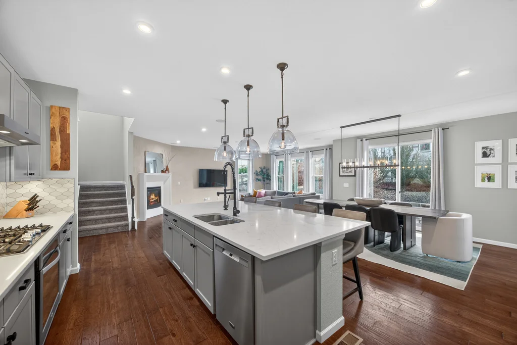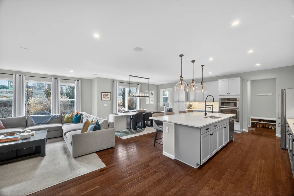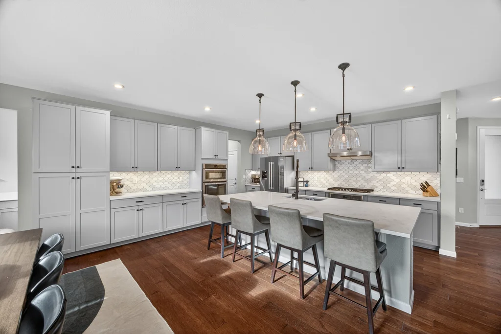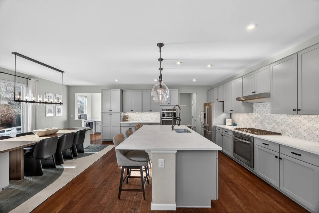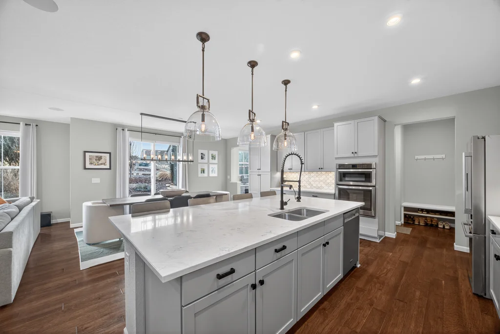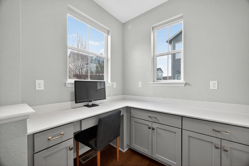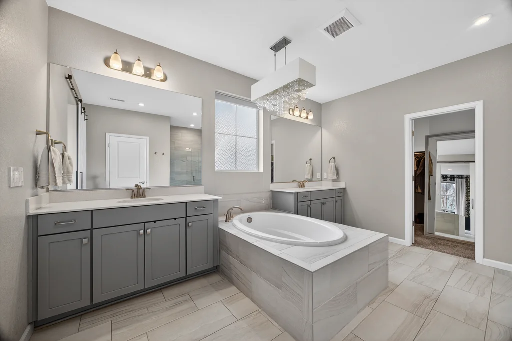 Set against the scenic foothills, this thoughtfully designed Sterling Ranch home blends modern comfort, smart technology, seller owned solar/Powerwalls, and elevated outdoor living, all perfectly positioned beside a community path and a short stroll to a neighborhood park. Step inside to soaring ceilings, expansive windows, and a bright, contemporary layout designed for everyday ease and entertaining alike. The main level features a dedicated office, generous dining area, and great room with built-in surround sound anchored by a gas fireplace. The kitchen is both stylish and functional with premium appliances, upgraded quartz counters, a massive center island, walk-in pantry, and an additional pocket office. A wide sliding door opens to the patio, creating a seamless indoor outdoor flow. Upstairs, four bedrooms provide flexibility and privacy, including three with ensuite baths. The spacious primary suite feels like a retreat, filled with natural light and complemented by a spa inspired bathroom with soaking tub, frameless glass shower, and an oversized walk-in closet. A large laundry room adds everyday convenience. The unfinished basement with 9’ tall ceilings and oversized windows offers excellent potential for future living space. The backyard is designed to impress, featuring professional landscaping with uplighting, stamped concrete patio, stone accents, built in grill station with pergola, multiple seating areas, high end Artesian Elite spa and a custom gas fire pit perfect for Colorado evenings. Energy efficiency is exceptional with a seller owned solar system, three Tesla Powerwalls, and Tesla EV charger. The home achieved a 92% solar offset in 2025 while running two AC units, resulting in an average electric bill under $25 per month. Sterling Ranch residents enjoy access to parks, trails, recreation facilities, community pool, and neighborhood dining and coffee spots just minutes away, creating a lifestyle that feels both active and connected.